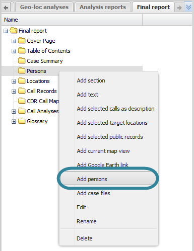 On the <Reports name> tab, right-click the folder in the report to which you want to add the person details, then click Add persons.
