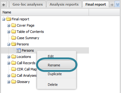 - Enter the new name for your person item then click OK. The name is updated on the <Reports name> tab.
