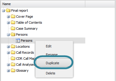 Enter a name for your new person item then click OK. The duplicated person item is displayed in the report structure. If you want to move it's position then left-click it and drag it to a new position.