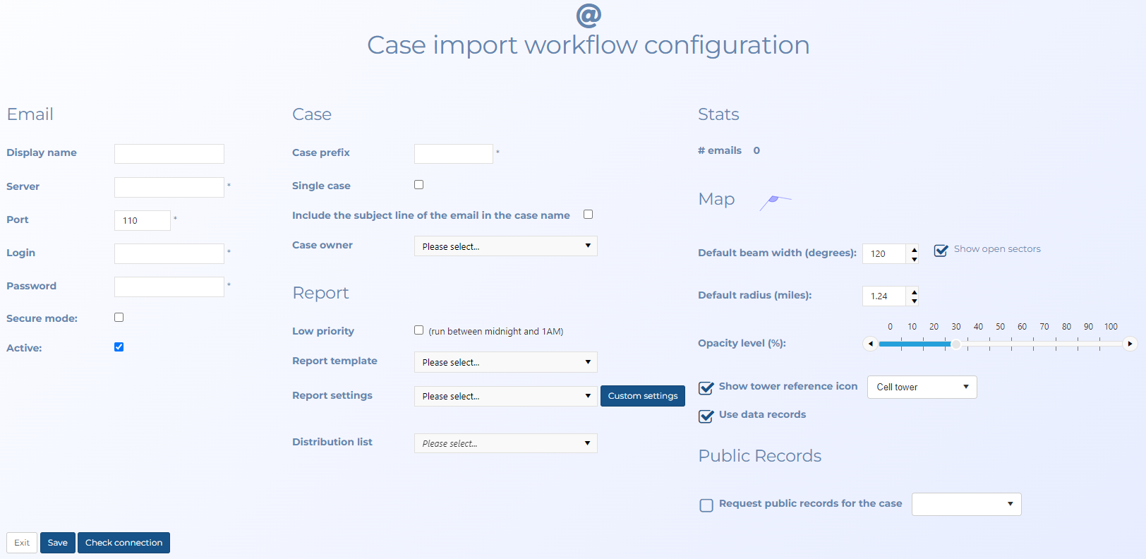 NOTE: This screen is only applicable if your account supports either a specific format of workflow automation for creating email cases or if you are using the OSS-SRN Express Portal to create cases. If you have requirements for using workflow automation in your organization, contact support at Gladiator Forensics.