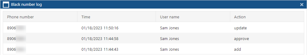 OSS-ESPA logs all additions, approvals, updates and deletions of black list identifiers, as well as logging all cases that include the identifier both as a target or an associate.