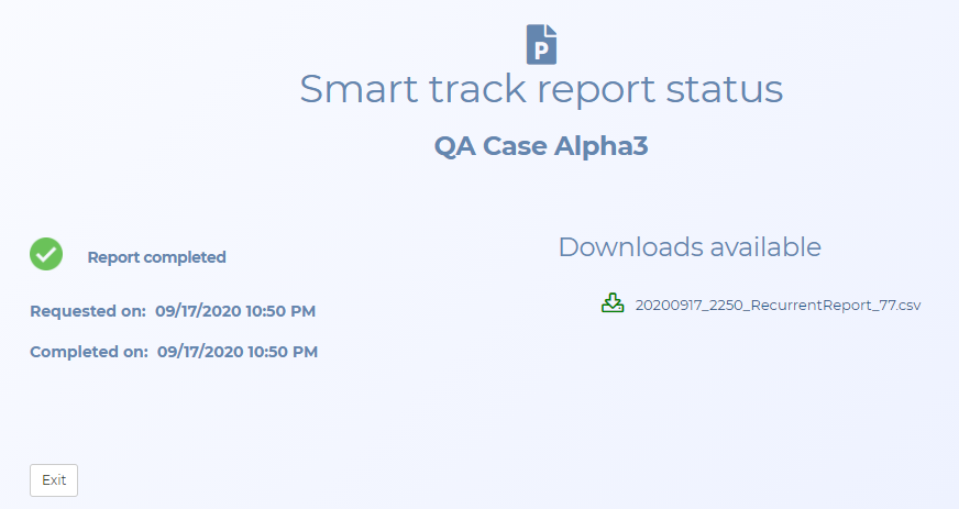 Smart Track report status screen