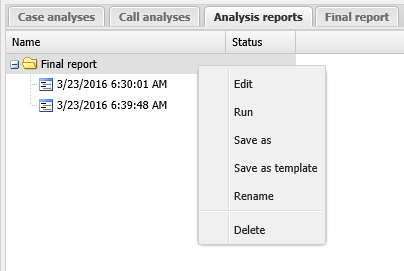 Right-click a report folder to display a menu which contains Save as template. Click to create a report structure template based on the structure used in the selected report. This template can then be selected for use in all cases and by all users when creating new reports using the New report dialog box. For further information refer to To create a new Microsoft Word report template that defines the report structure.