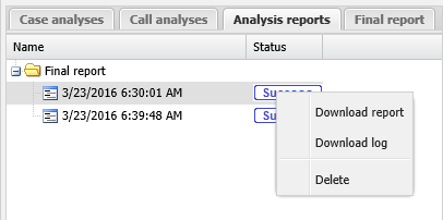 The Analysis reports tab allows you to create and manage advanced analysis reports for your case.