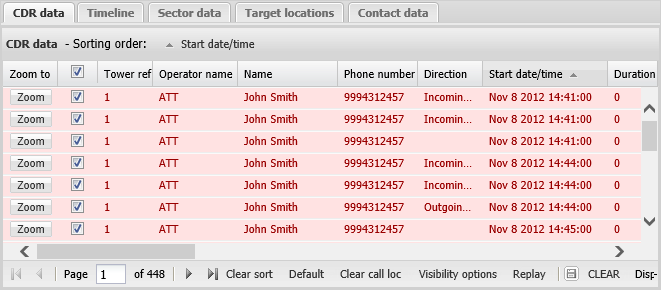 • pink with red text, it is because the location information for the call record could not be found in the cell tower data file. If a significant amount of the cell tower data is displayed in pink it means your investigation is less detailed and therefore less valid and you should consider sourcing and uploading new cell tower data files.