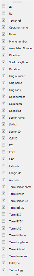 You can also select, by clicking Visibility options, to show or hide unselected calls or calls which do not correlate with the cell tower data file.