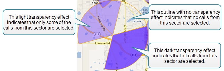 The following graphic indicates the three effects used to display a sector: