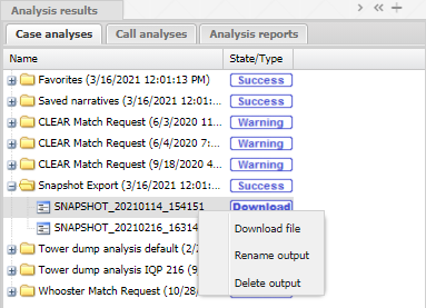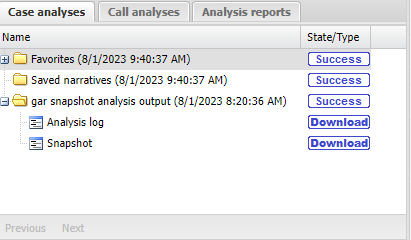- Warning: indicates that the analysis completed but there were some issues. For further information on the warnings you can download the Analysis log on the Case analyses tab.