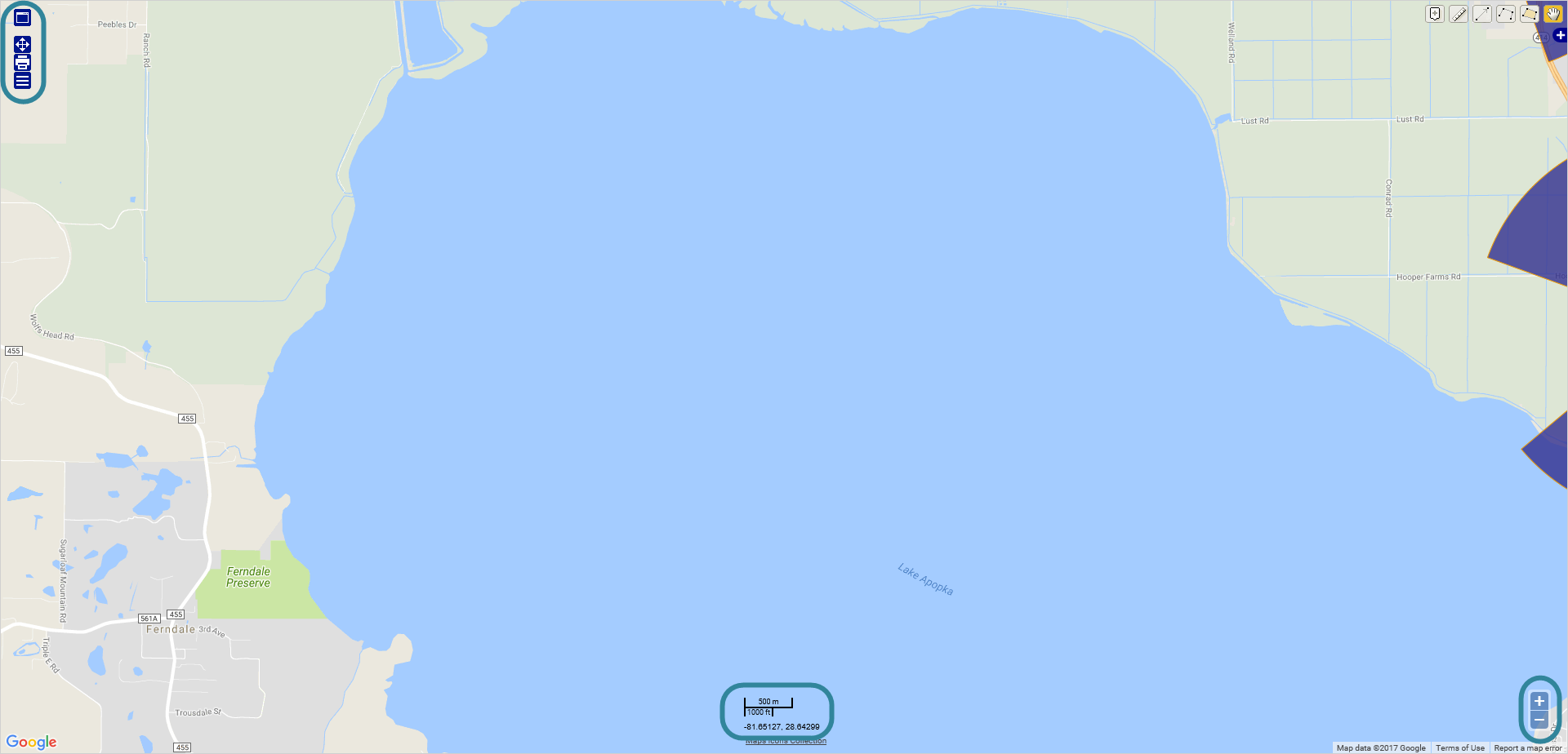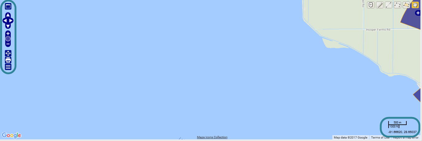 The zoom control is located at the lower right of the map. This zoom control only zooms in and out.