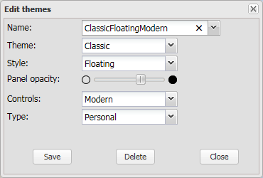 Either select an existing theme to edit or delete it, or enter a name for a new theme.