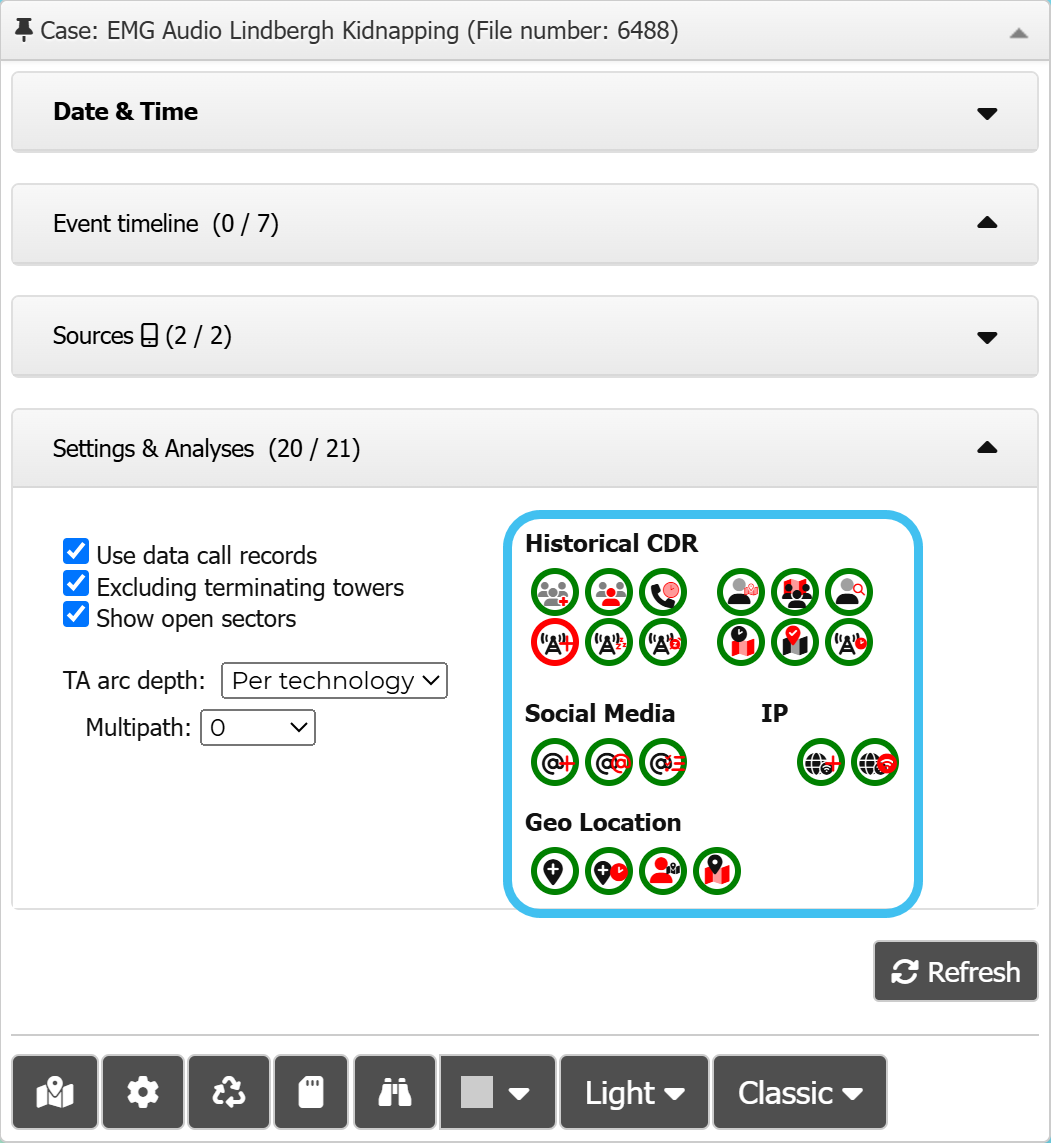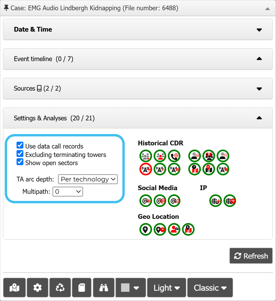 This topic describes the purpose of the ESPA analysis center screen's Input and settings view and all the settings and buttons on it.