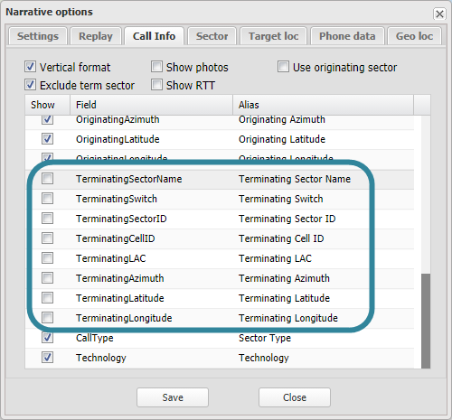 This topic describes the purpose of the Narrative options dialog box and all the settings and buttons on it.