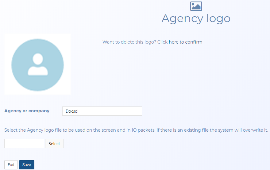 This topic provides an overview of the Agency logo screen and all the settings and buttons on it. However if you require a step-by-step procedure on adding or removing your agency logo refer to Managing your agency logo.