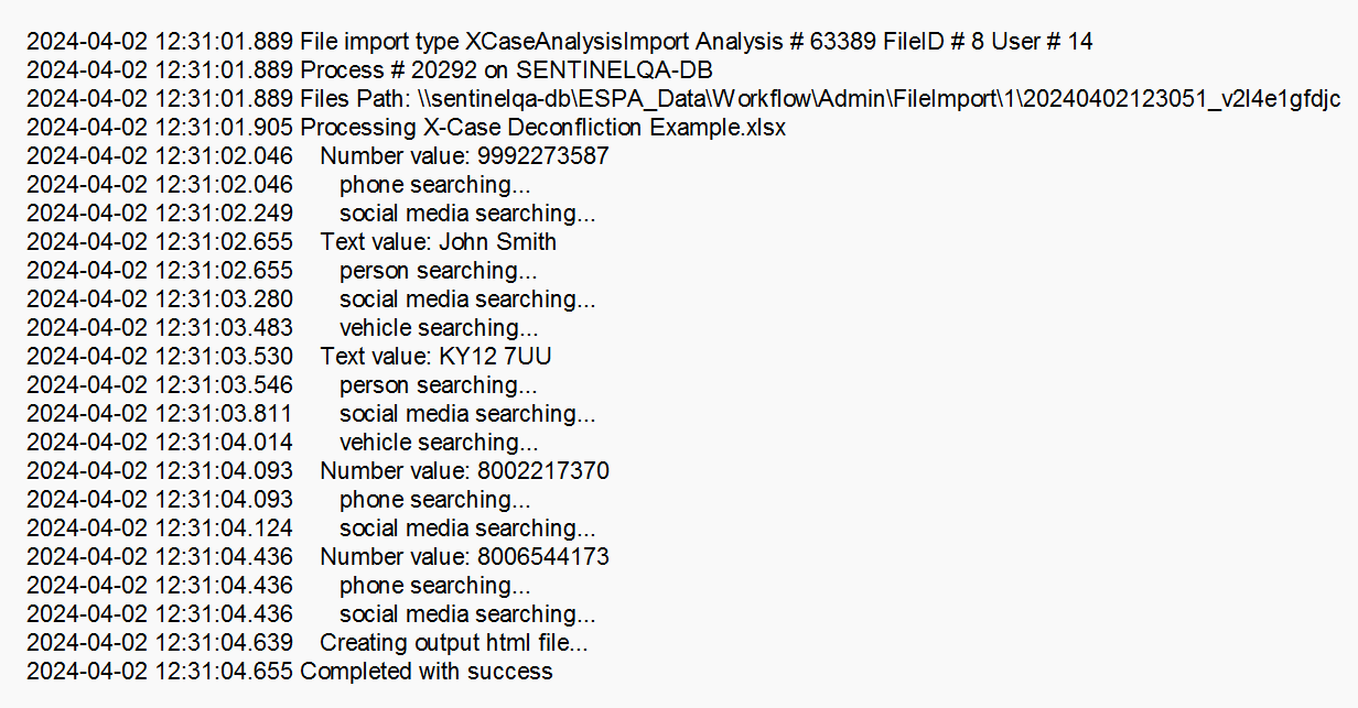 The Batch X-Case deconfliction screen allows you to perform an X-Case search on multiple identifiers at once. To do this you must upload a file containing all the identifiers you want to search on. Identifiers can be phone numbers, IMSI, IMEI, names, license plates, and social media accounts. The identifiers must be listed in the file under a column titled Identifier; a template file is available on the screen for you to download if required. Once imported a search is run, on both targets and associates, on your OSS-ESPA account. The report, which details all the cases your identifiers were located in, along with useful details such as the name, email and phone number of the person who created the case, is made available on the screen for you to download by clicking