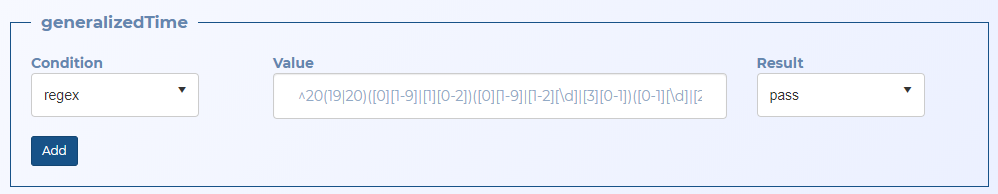 In this example, if the generalizedTime field contains a value which uses the format defined by the regular expression then it will pass.