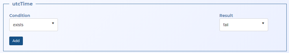 This setting is only displayed when a message field is selected. Select the condition you want used to validate the field, either: "exists", "equals", "between" or "regex" (regular expression).