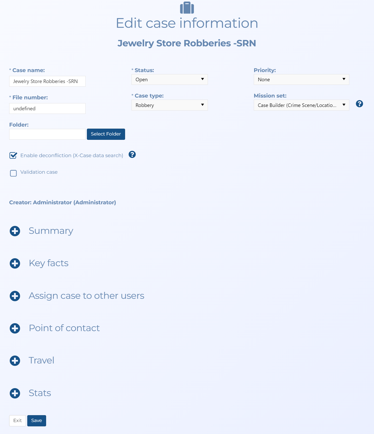 This topic provides an overview of the Edit case information screen and all the settings and buttons on it. However if you require step-by-step procedures on editing cases refer to To edit an existing case.