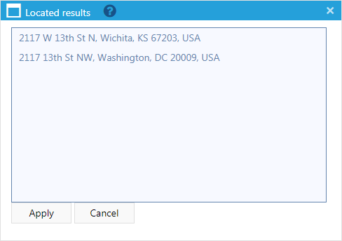 The Located results dialog box, which is opened by clicking Locate on the Locations of interest screen (Case management), allows you to either: