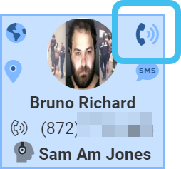 an events indicator containing four icons, one in each corner, which represent: data session, GPS ping, SMS call, and the intercept type which is either a wiretap call or a PRTT (Pen Registers Trap Trace ) call. All four icons display even if you have not been given permission to monitor them on the Queue management screen. If you are a monitoring supervisor, you can also listen into a monitored call by clicking the phone icon in the top-right corner.