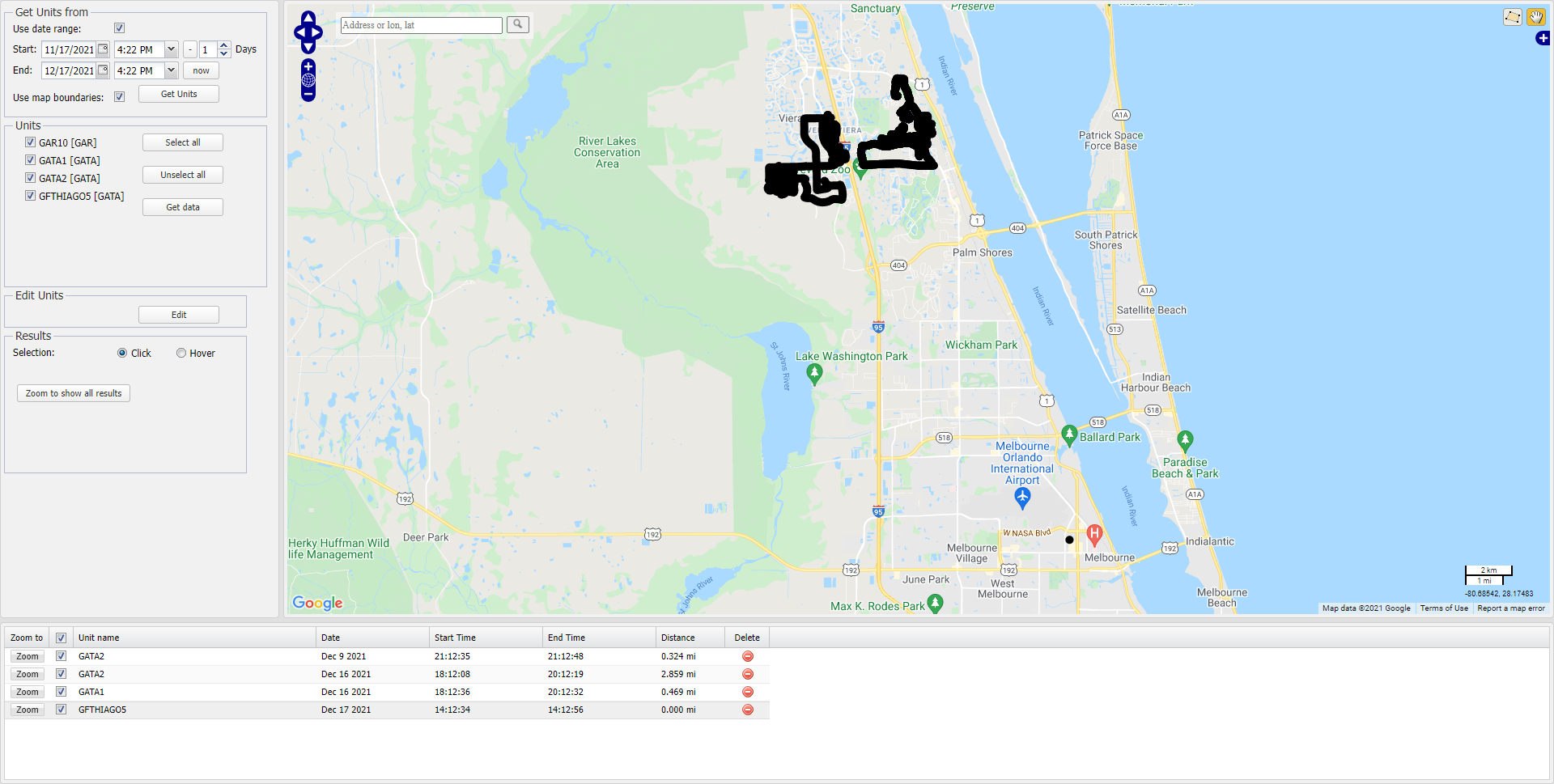 Click to display in Units all the field units that performed trails only within the selected map boundaries.