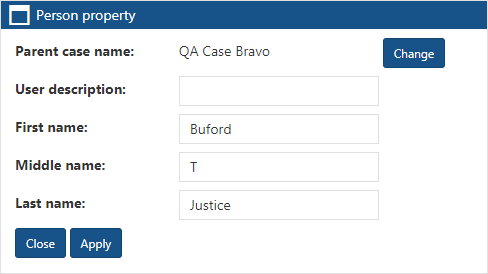 This topic provides an overview of the Person property dialog box and all the settings and buttons on it. However if you require step-by-step procedures on editing people using the View i-cases screen refer to To edit a person.