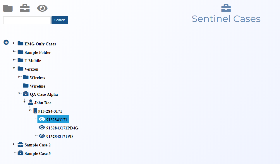 Click to open the Sentinel screen which allows you to monitor the i-cases. The Sentinel screen opens on a separate browser tab with all the i-cases for the phone selected.