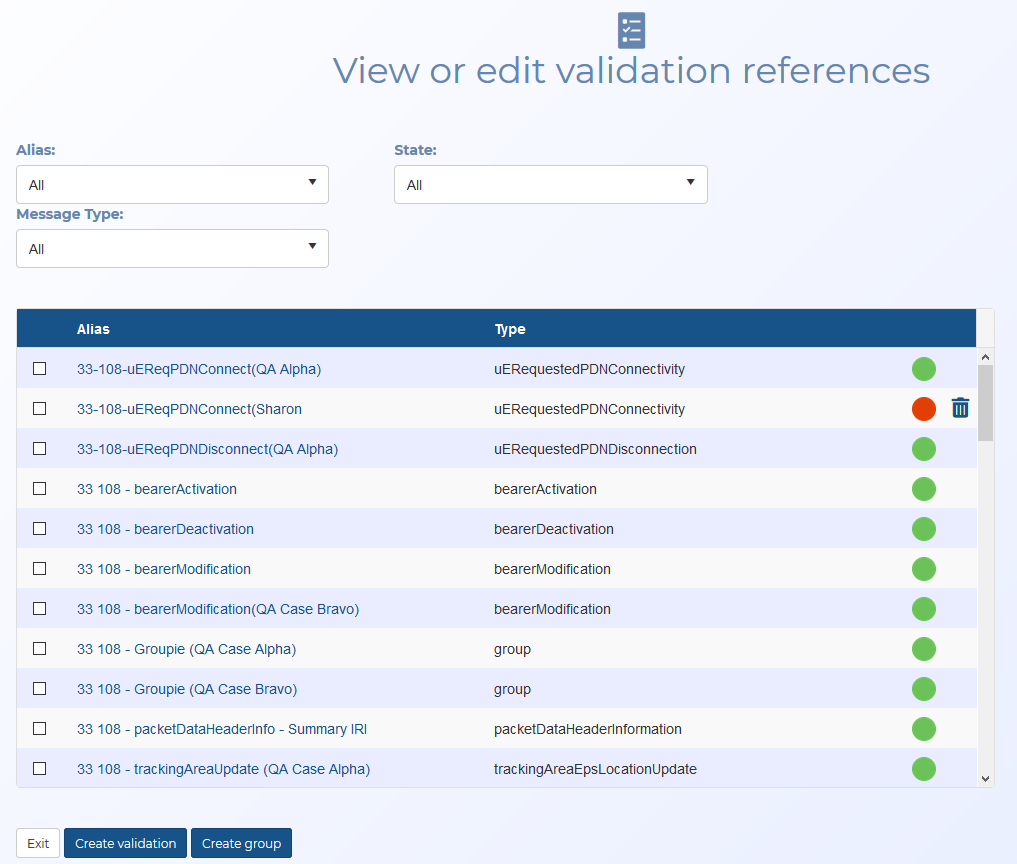 Use this filter to search for, and display the name you used when you saved the validation reference or group. You can use the search box at the top of the list to enter text to help you locate the alias quickly.