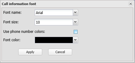 This topic describes the purpose of the ESPA analysis center screen's Call information font dialog box and all the settings and buttons on it.