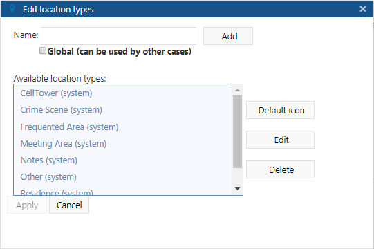 Edit location types dialog box
