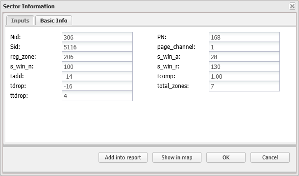 Sector information dialog box