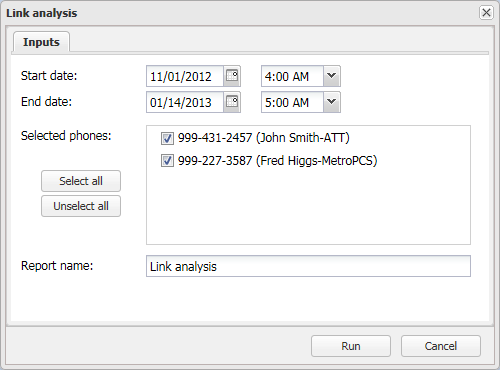 This topic describes how to run a link analysis of two ore more phone numbers using the information from the CDR and phone data files.