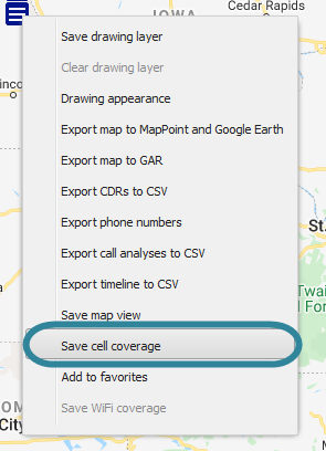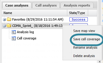 NOTE: Save cell coverage is only displayed for folders that currently have a cell coverage result open on the Cell coverage tab.